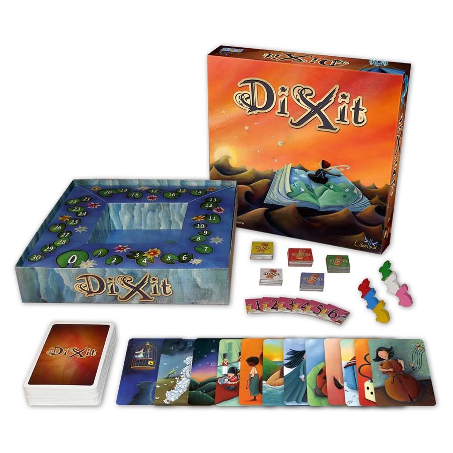 Em Dixit, os jogadores assumem o papel do contador de histórias - o narrador. O narrador da vez deve olhar as 6 cartas em sua mão e, sem as revelar aos outros jogadores, falar uma frase sobre ela. Os outros jogadores devem então selecionar uma carta (também